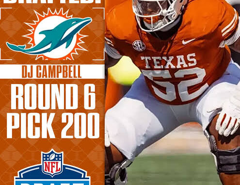The Texas Longhorns can add another offensive lineman to the list of players drafted under head coach Steve Sarkisian. DJ Campbell has been taken in the 2026 NFL Draft by the Miami Dolphins. Campbell is the No. 200 overall pick of the sixth round. A fantastic moment for him, his family, and everyone involved with the Texas program.